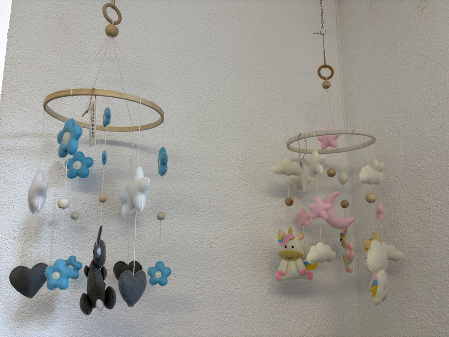 Handgefertigte Mobile und Türschilder in dieversen Farben und Motiven von Amy